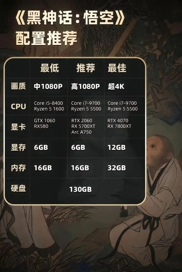 “咱们玩了那么多年的外国3A游戏,这次换成他们来玩咱们的国产游戏,还是挺自豪的。”吴胜一边说着,一边发来了一张《黑神话:悟空》的游戏配置截图,“看到《黑神话:悟空》针对简体中文的界面、完全音频、字幕三方面的全面适配没有?咱们什么时候有过这待遇?”